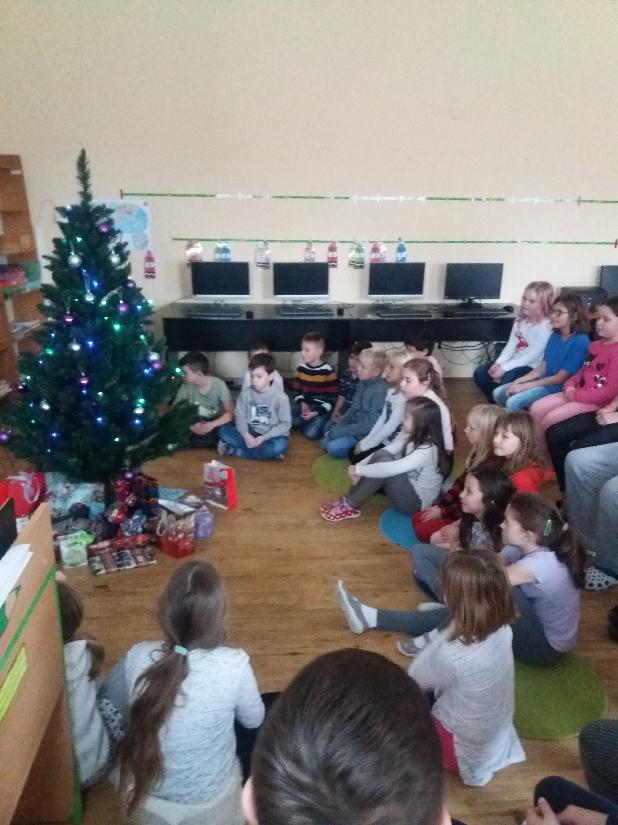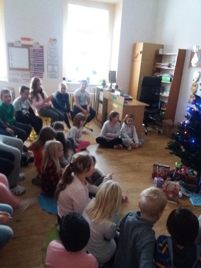 Žáci naší školy si pod vánočním stromečkem rozdávali dárky.