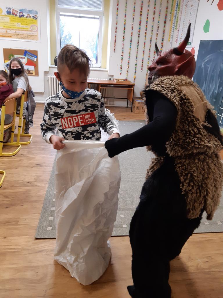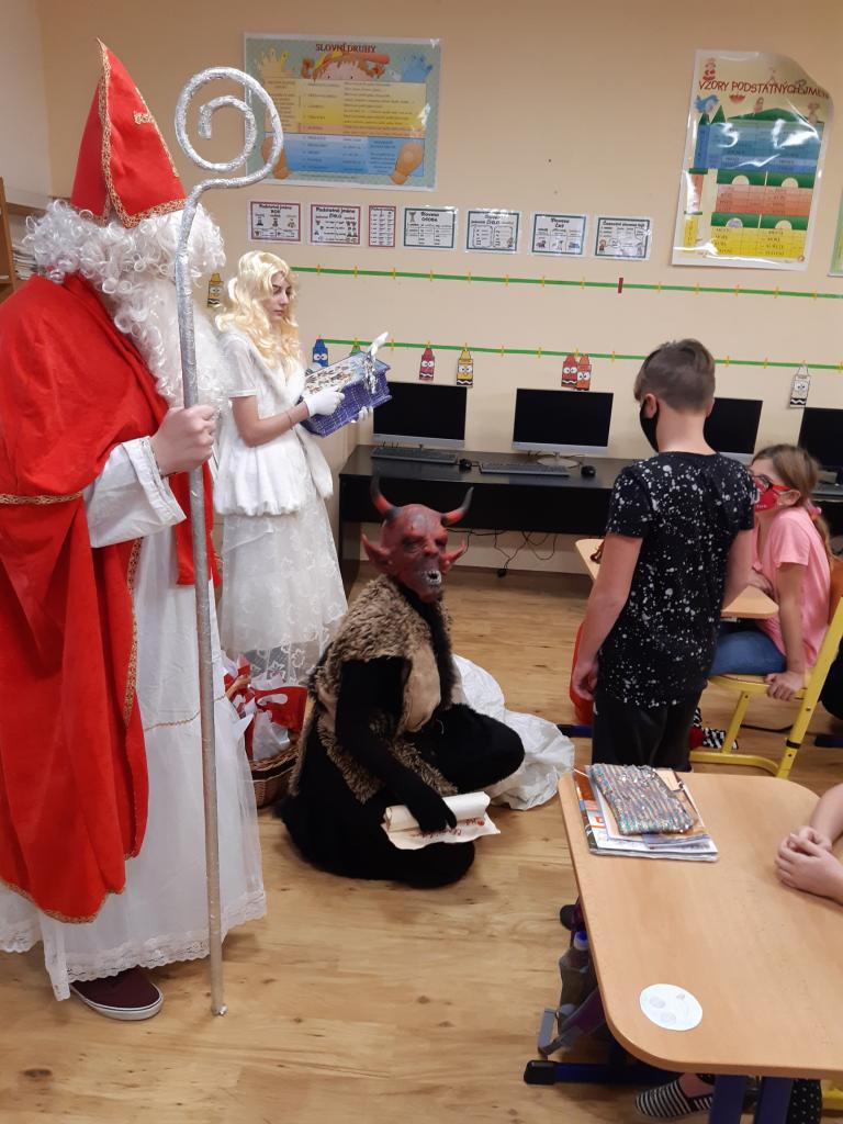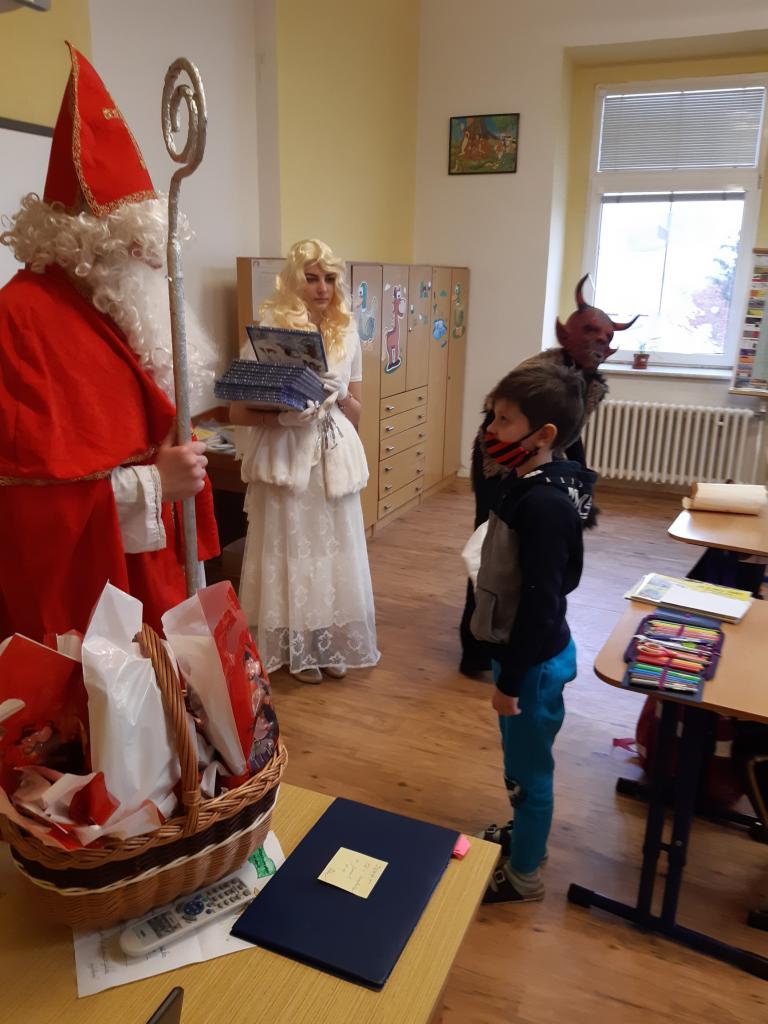 Dnes naše děti a žáky navštívil Mikuláš se svými kamarády Čertem a Andělem. Přinesli hodně dárečků, poslechli si pěkné básničky a písničky a nikoho si Čert neodnesl do pekla!