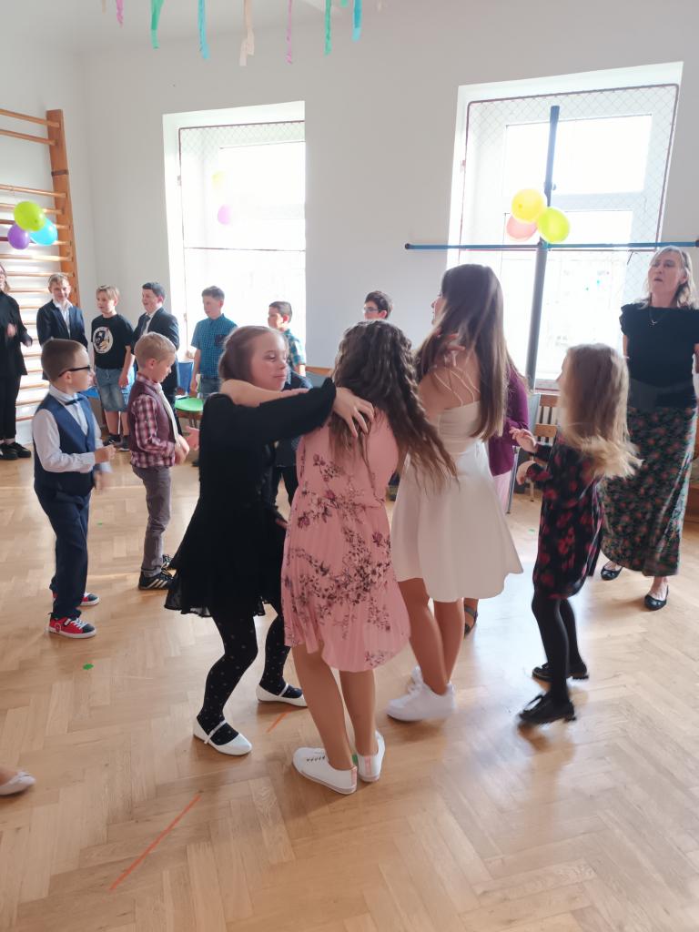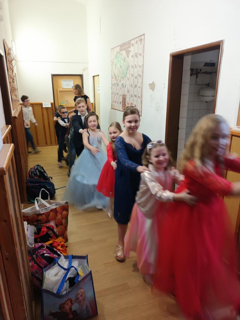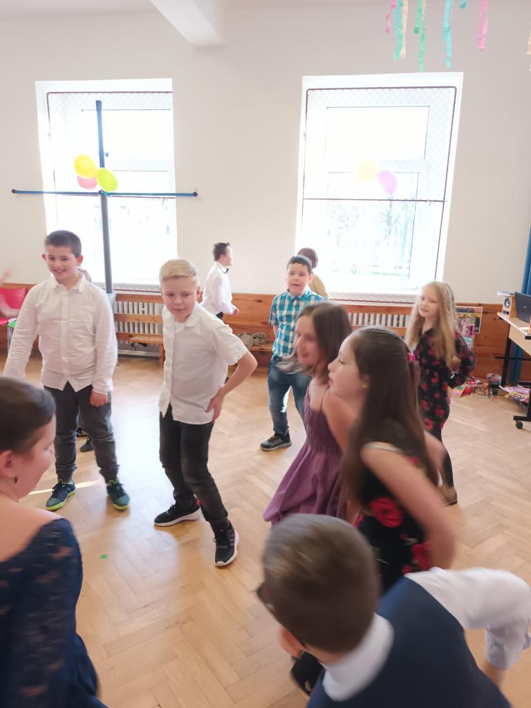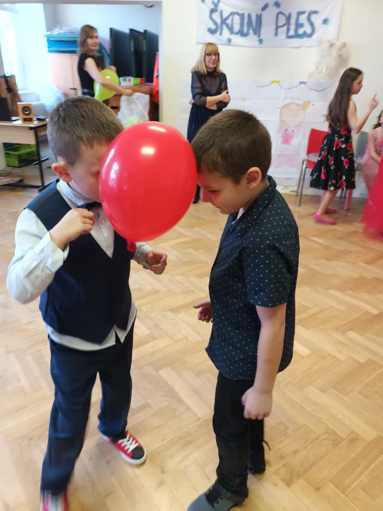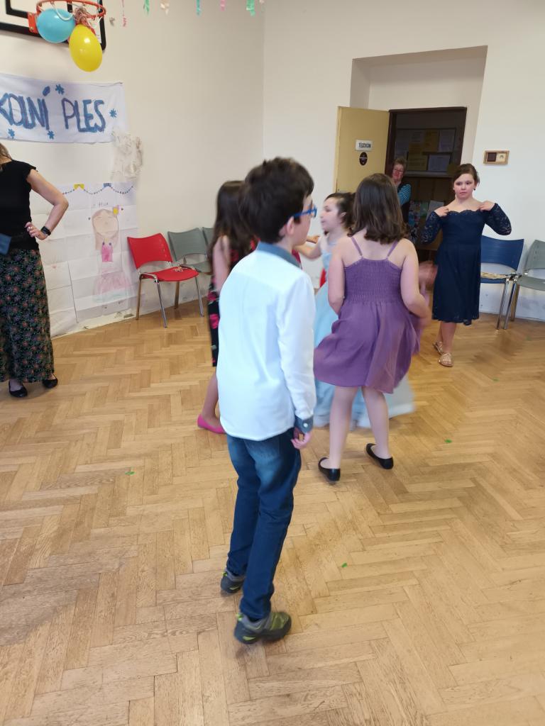 1. ročník Žákovského plesu se velmi vydařil. Všichni chlapci a dívky měli pěkné společenské oblečení.