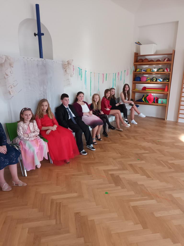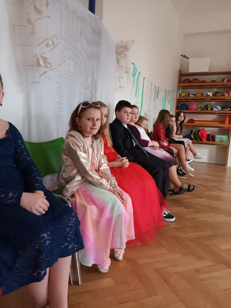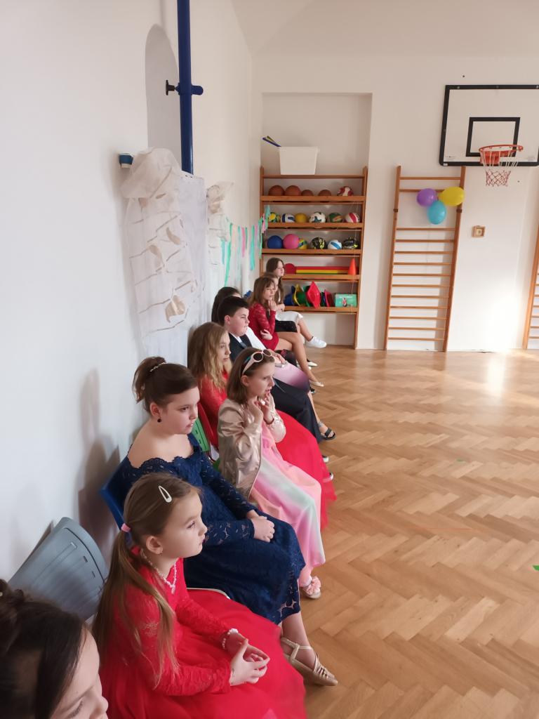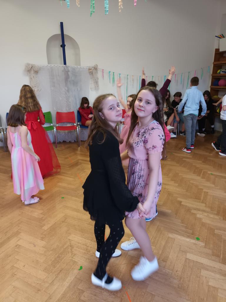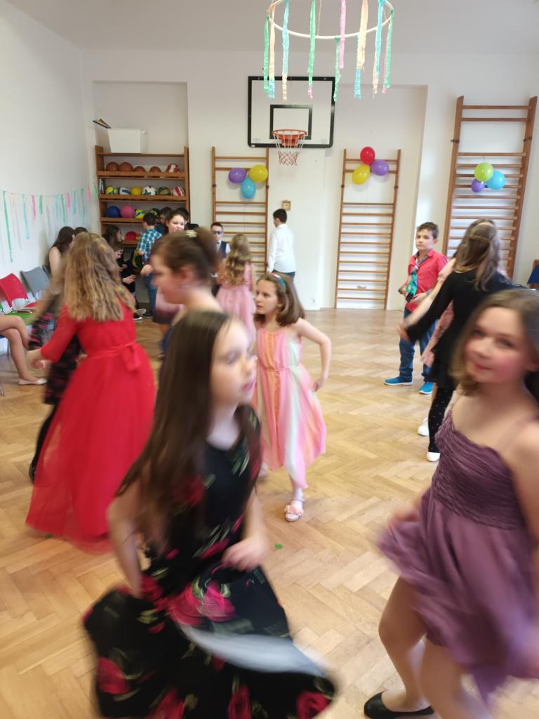 1. ročník Žákovského plesu se velmi vydařil. Všichni chlapci a dívky měli pěkné společenské oblečení.