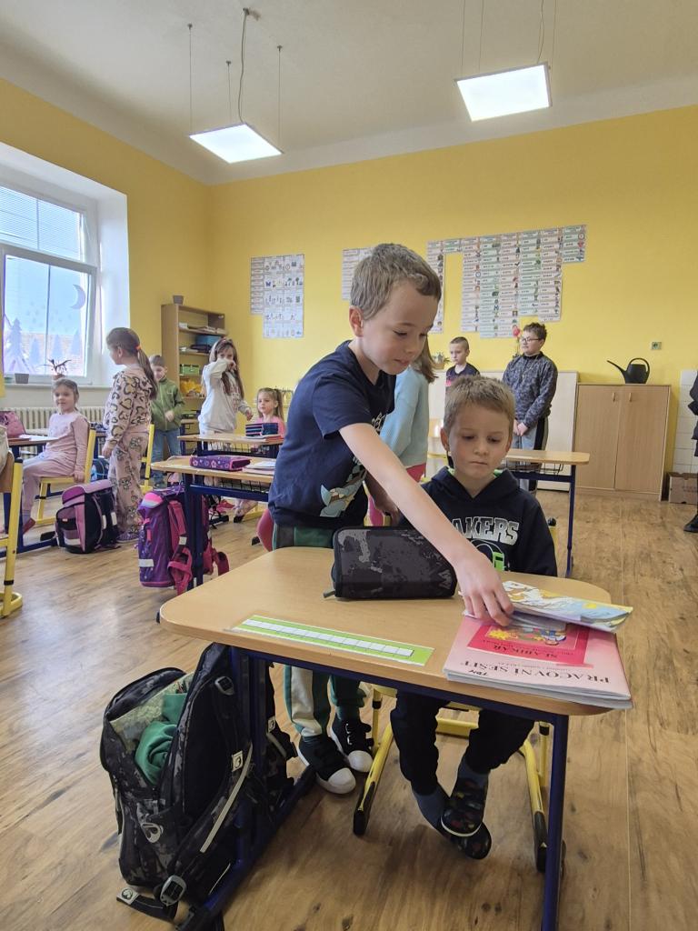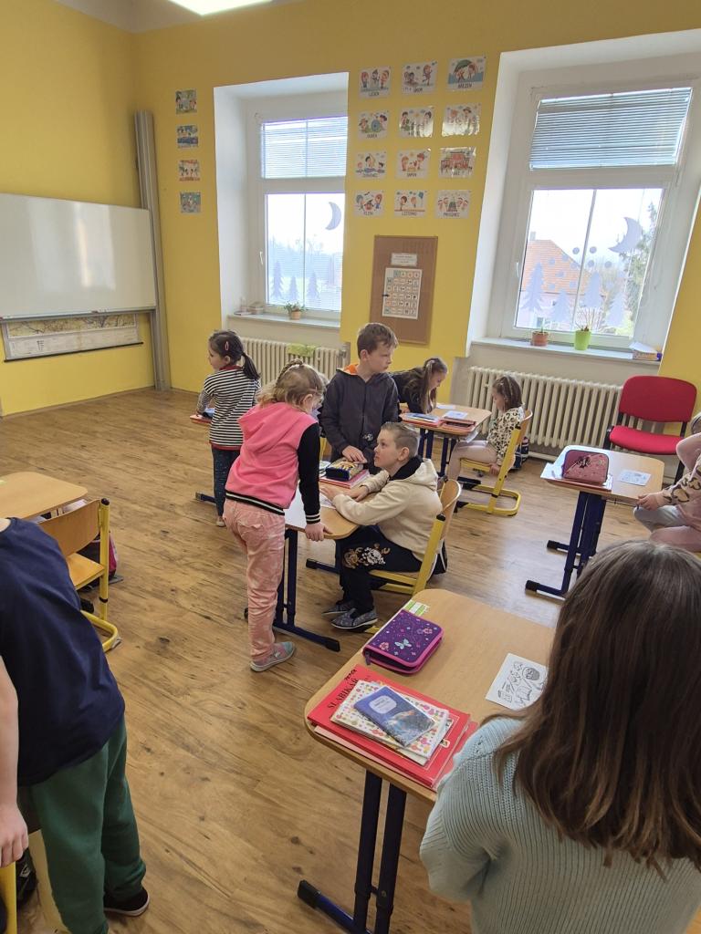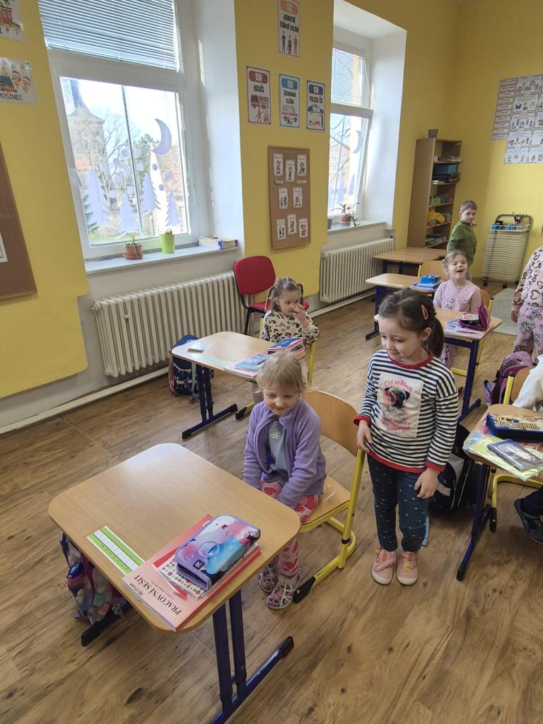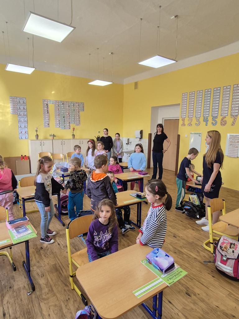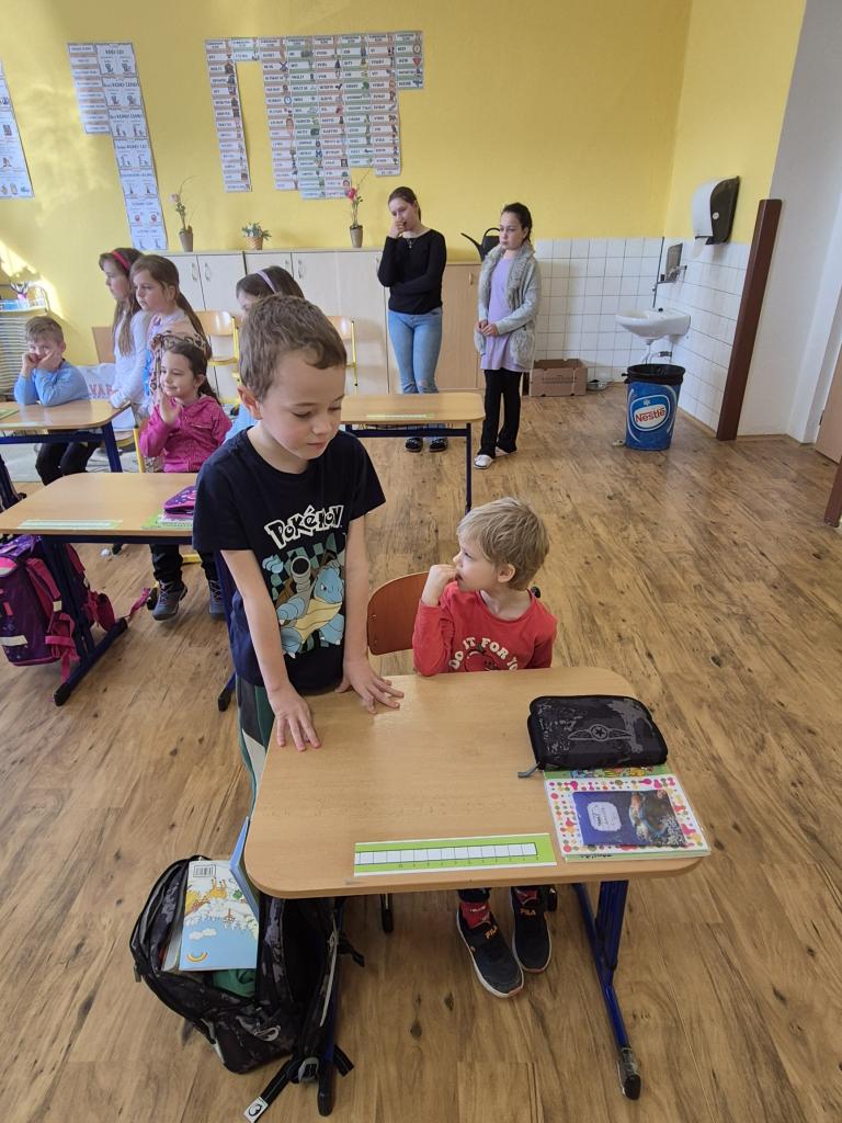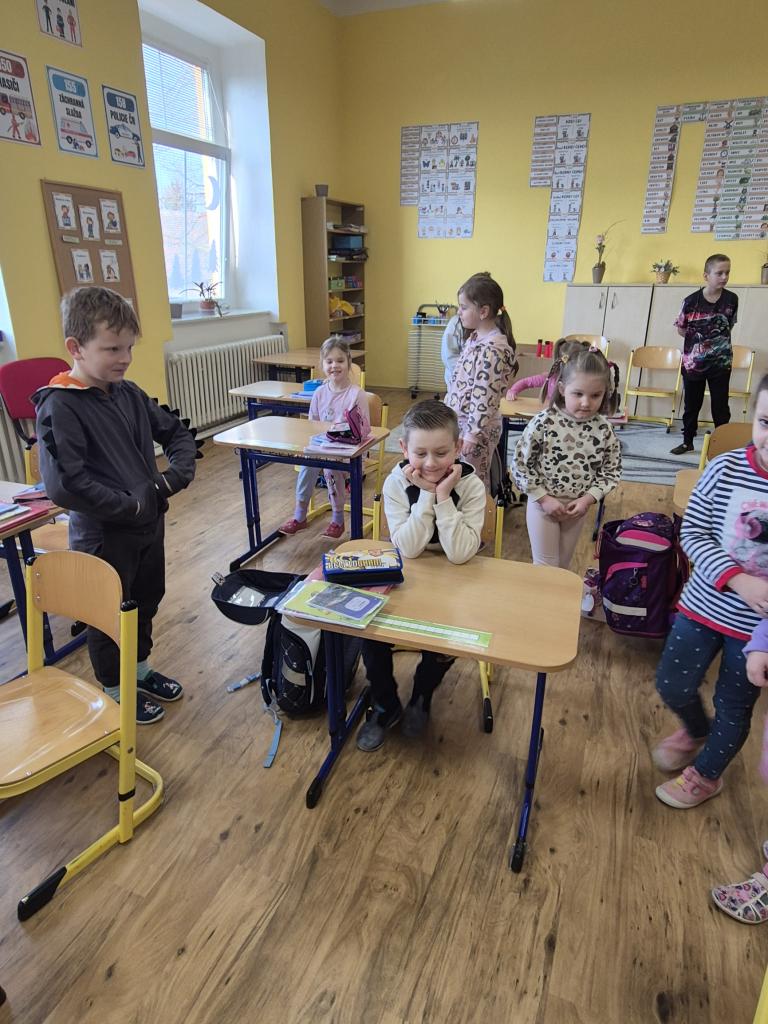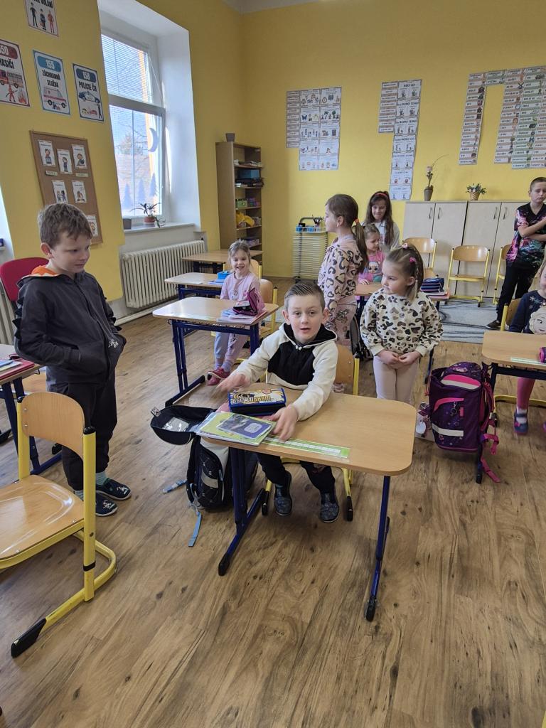 V Den otevřených dveří ve škole přišly na návštěvu děti z naší mateřské školy a také děti z Mateřské školy v Hospozíně.