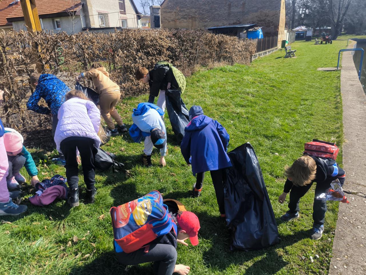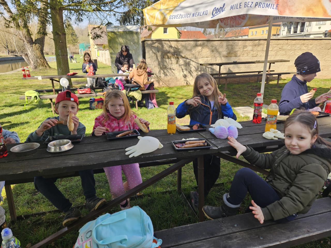 Odměnou za uklizenou obec byly chutné opečené buřty a limonáda.